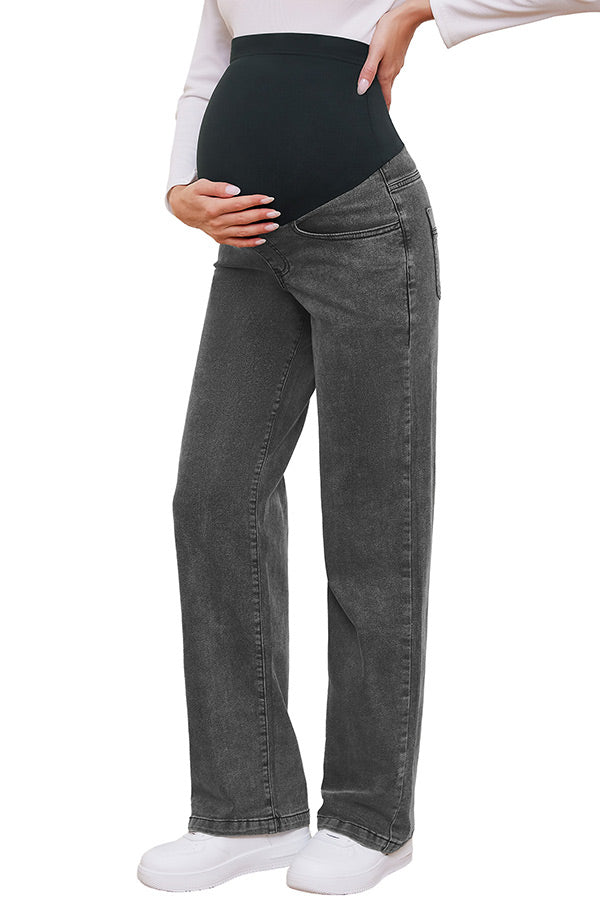 Women's maternity jeans straight leg relaxed fit over belly pregnancy denim with pockets.